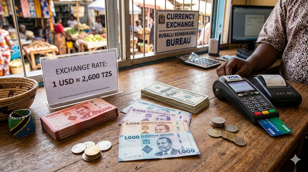 Shilling (TZS), with an approximate rate of 1 USD≈ 2,600 TZS (rates